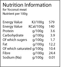 Picked and halved to show the young soft white Yoconut in the centre.